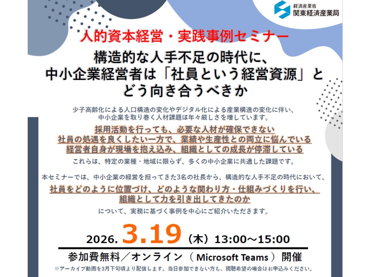 【人的資本経営・実践実例セミナー】 ―構造的な人手不足の時代に、中小企業経営者は「社員という経営資源」とどう向き合うべきか―